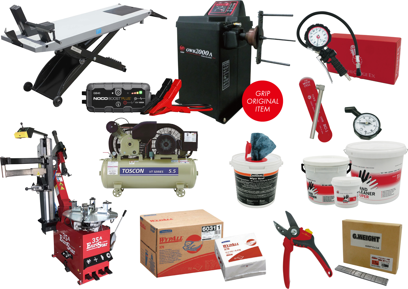 グリップ商事は国内外メジャーブランドのタイヤをはじめ、チェーン・ブレーキパッドやオイル・ケミカル商品など、